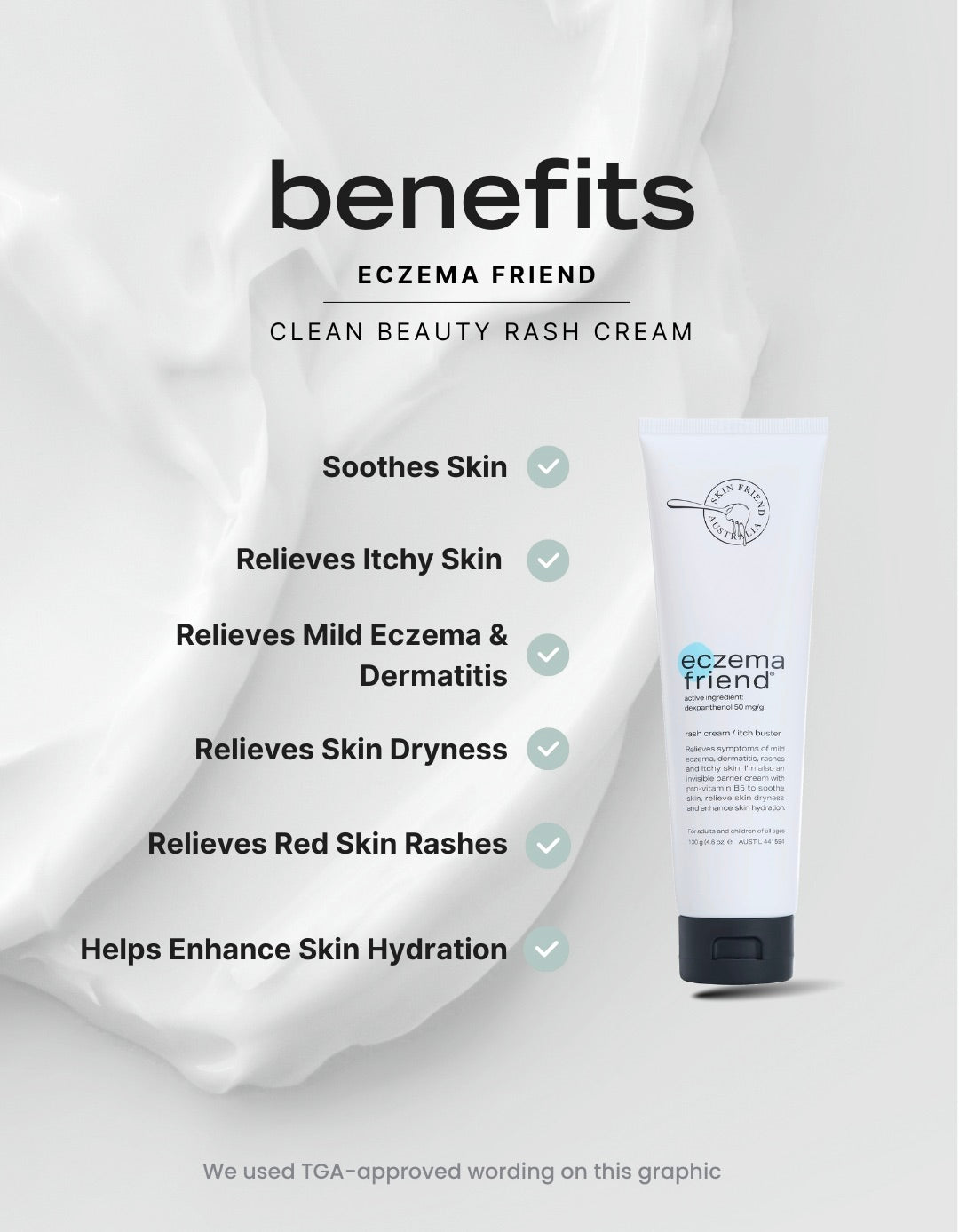 Eczema Friend contains 50mg/g of Dexpanthenol (Pro-Vitamin B5), a scientifically-proven vitamin active ingredient that helps: